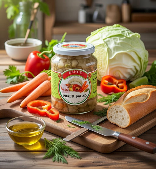 View full detailsBende Mixed Marinated Salad is a crunchy pickled vegetable mix in a 670 g jar. Bende’s “Csalamade” mixed salad is widely sold in a 670 g size acros...