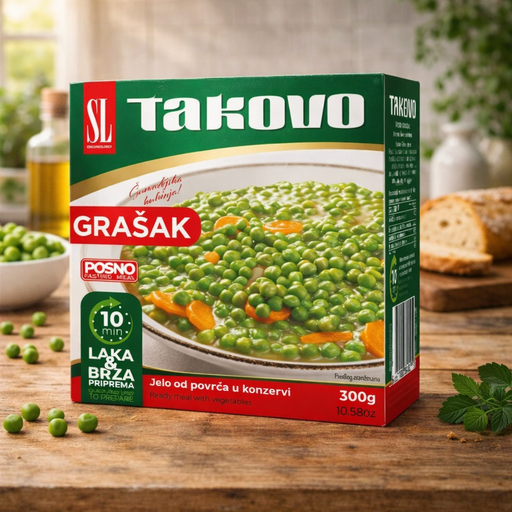 View full detailsTakovo Lenten Green Peas (Posno) is a ready-made pea dish in a 300 g can. Swisslion Takovo is known for shelf-stable Balkan pantry foods, including...