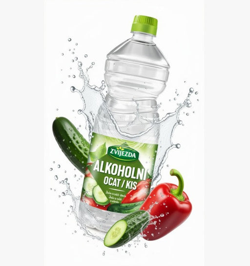 Zvijezda Alcohol-Based Vinegar for Preserving 1L is sold in its labeled retail format for convenient, ready-to-use enjoyment. The brand produces th...