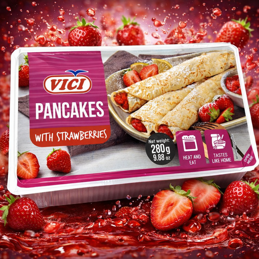 Vici Pancakes with Strawberries are filled crepes in a 280 g pack. Produced in Lithuania, they’re a convenient frozen treat for quick desserts or s...