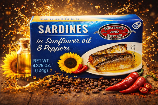 View full detailsBrother & Sister Sardines in Sunflower Oil with Spicy Peppers 125g features carefully packed sardines in sunflower oil. The fillets are selecte...