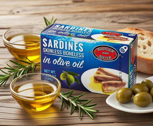 View full detailsBrother & Sister Skinless & Boneless Sardines in Olive Oil 124g features carefully packed sardines in olive oil. The fillets are selected f...