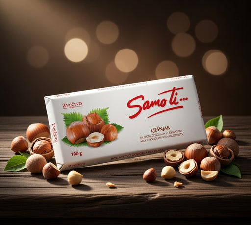View full detailsSamo ti... Lješnjak is a classic Croatian confection from Zvečevo. It features smooth milk chocolate filled with a rich and creamy hazelnut center,...