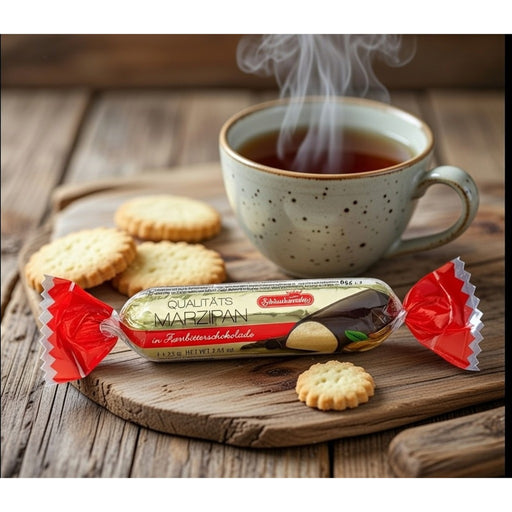 View full detailsSchluckwerder Dark Chocolate Covered Marzipan is a 75g marzipan bar coated in dark chocolate. It’s made from a classic almond marzipan center wrapp...