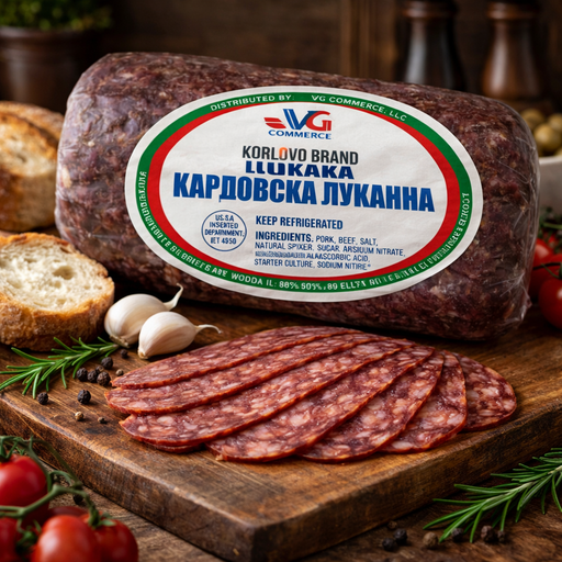View full detailsKorllovo Brand Lukanka (Karlovska Lukanka) – Deli Cut is deli-style deli meat built for clean slicing and balanced flavor. The grind and cure are s...