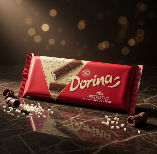 View full detailsKraš Dorina Rice is a delicious milk chocolate bar filled with light and crispy puffed rice. Produced by Kraš, a renowned Croatian confectioner sin...