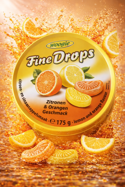 Woogie Fine Drops Lemon & Orange (175 g) are crisp hard candies with a bright citrus flavor in a convenient tin-style pack. Made in Austria, th...