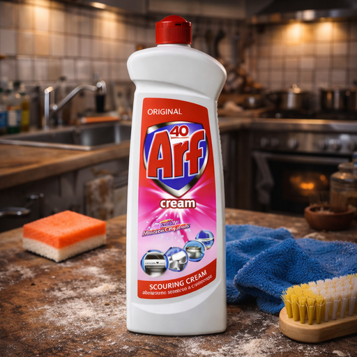 Arf Original Scouring Cream with Active Micrograins is a household cleaning cream in a 400 ml bottle. Arf by Prohigiena d.o.o. from Slovenia is des...