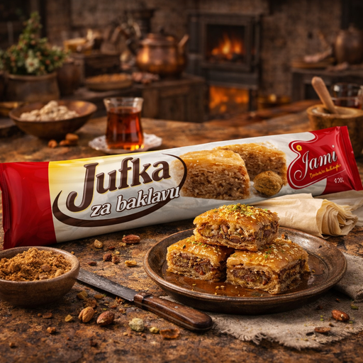 View full detailsJami Jufka Phyllo Sheets for Baklava 450 g are thin pastry sheets made for classic Balkan desserts and savory pies. The delicate layers bake up cri...