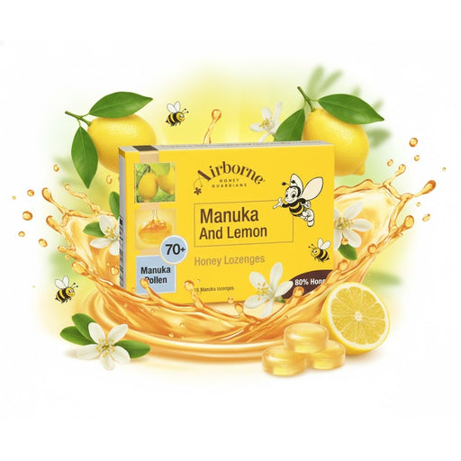 View full detailsAirborne Manuka & Lemon Honey Lozenges 16 ct 45g are honey lozenges with manuka and lemon flavor in a 16-count pack. Airborne offers convenient...