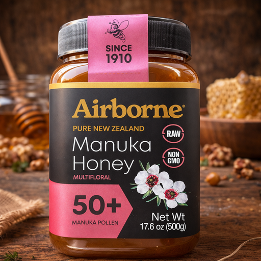 Airborne Manuka Honey Multifloral 50+ (500g) is a high-quality New Zealand honey containing over 50% Manuka and Kanuka pollen. This raw, non-GMO ho...
