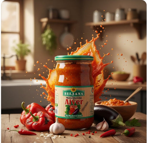 View full detailsBiljana De Luxe Mild Ajvar Roasted Pepper & Eggplant Spread 670g is a premium European vegetable spread offered in its traditional format. Craf...
