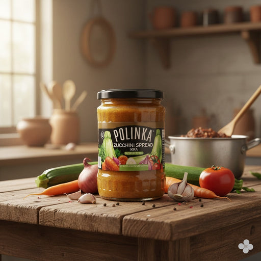View full detailsPolinka Zucchini Spread Ikra Russian Style is a savory vegetable spread in a 19.4oz (550g) jar. Retail listings label this product as zucchini ikra...