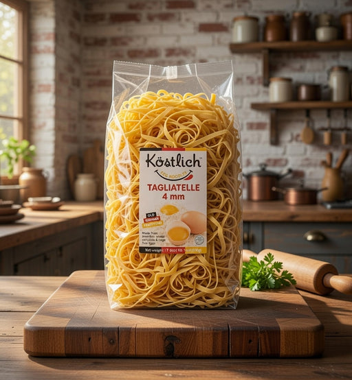 View full detailsKösttlich Tagliatelle Egg Noodles are traditional German-style egg pasta, made from premium wheat semolina and cage-free eggs in a 500 g pack.These...