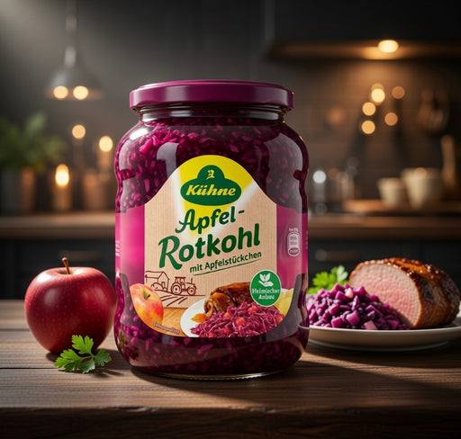 Kühne Apfel Rotkohl mit Apfelstückchen 720ml is a packaged grocery product prepared according to manufacturer specifications. It reflects the brand...