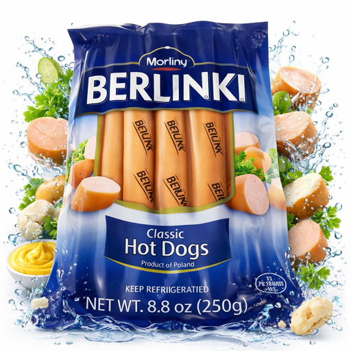 View full detailsMorliny Berlinki Classic Hot Dogs (Smoked Sausage) 250g is smoked, spiced sausage built for clean slicing and balanced flavor. The grind and cure a...
