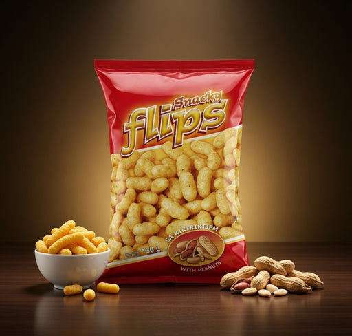 View full detailsVispak Snacky Flips with Peanuts (Sa Kikirikijem) is a 130 g bag of crunchy snack from Vispak. Open and enjoy straight from the bag, or serve in a ...