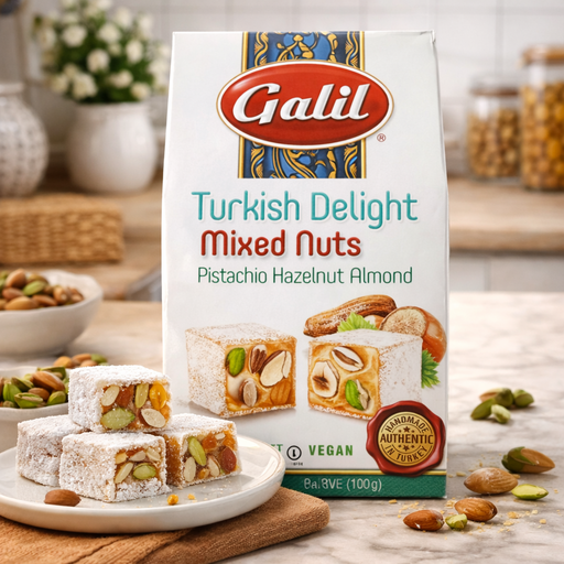 View full detailsGalil Turkish Delight Mixed Nuts is a traditional lokum candy filled with pistachios, hazelnuts, and almonds in a 100 g box. Made in Turkiye, this ...