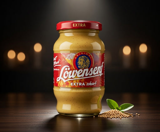 View full detailsLöwensenf Extra Hot Mustard is a fiery German condiment made with mustard seeds and vinegar in a 250g jar. This extra scharf variant features a smo...