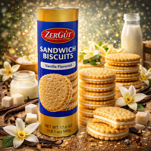 View full detailsZergut Vanilla Sandwich Biscuits 500g is a snack from Zergut. Zergut is a specialty food brand popular across European markets. Enjoy it as a snack...