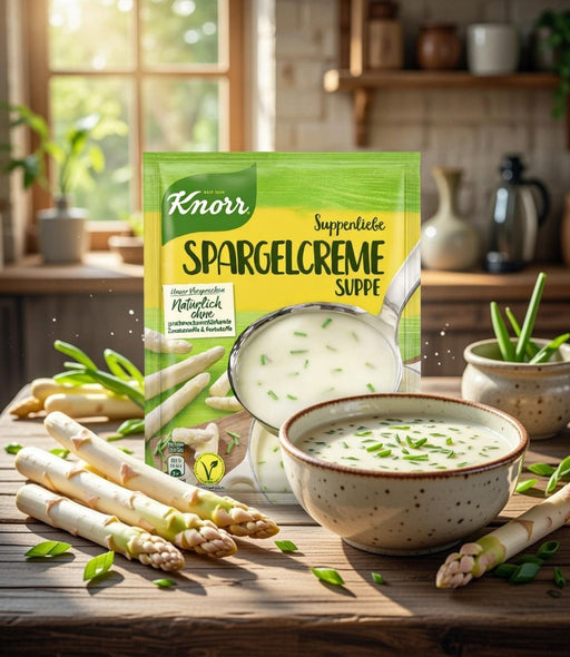 View full detailsKnorr Suppenliebe Spargel Cremesuppe is a German asparagus cream soup mix in a 58g packet. Retail listings describe it as a creamy soup with aspara...