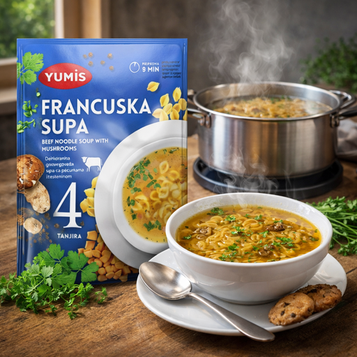 Yumis Francuska Instant French-Style Chicken Soup Mix 60g is a food from Yumis. Yumis is a Serbia-based brand known for dry-goods categories such a...