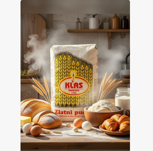 View full detailsKlas Zlatni Puder Type 400 is a fine wheat flour in a 1000 g bag for everyday Balkan baking. Klas is a trusted Bosnian pantry brand known for consi...