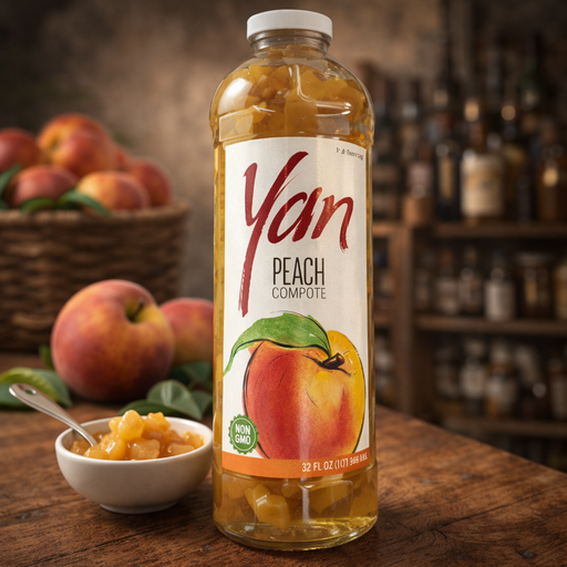 Yan Peach Compote is a generous 32 fl oz jar (about 946g) of tender peaches ready for dessert or the pantry. It’s a classic fruit compote format th...