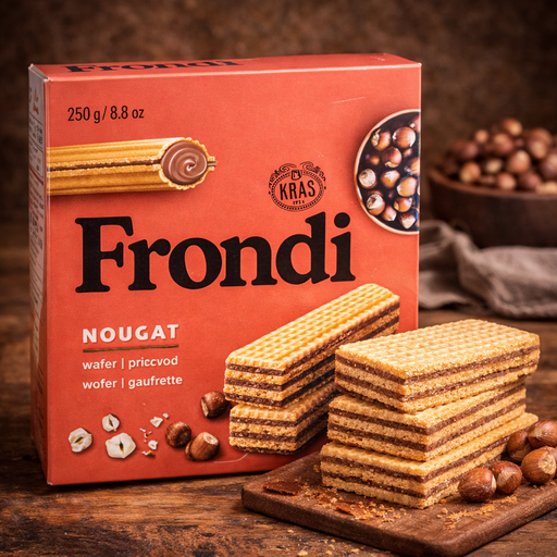 View full detailsKraš Frondi Nougat Wafers 250g is a chocolate biscuit-style treat by Kraš packaged in a 250g size. It brings forward rich cocoa tones with a clear ...