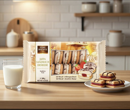 View full detailsFeiny Biscuits Jaffa Sandwich Strawberry & Cream is a 380 g pack of sponge-style sandwich cookies with cream and strawberry-flavored filling. T...
